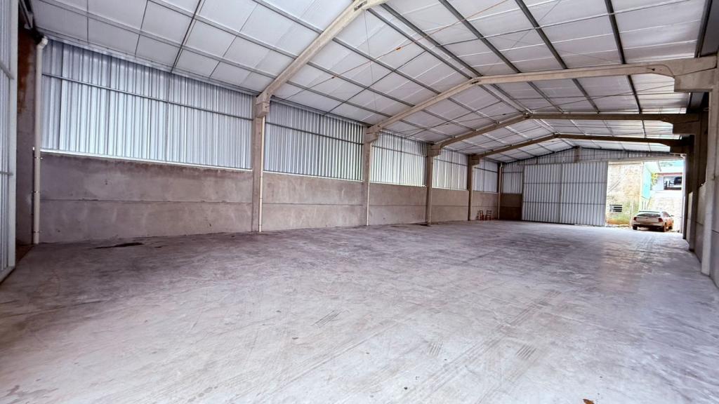 Pavilhão para locação de 360 m² sendo 12 m de largura e 30 m de comprimento, com 2 m e meio de fechamento do piso acima pré moldado e o restante metálico.
